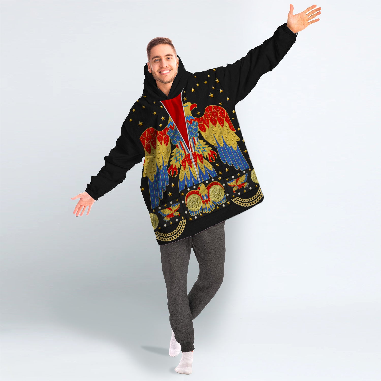MakerHuman Elvis EAGLE Black Cosplay & Costume Over Size Hoodie Fleece One Size