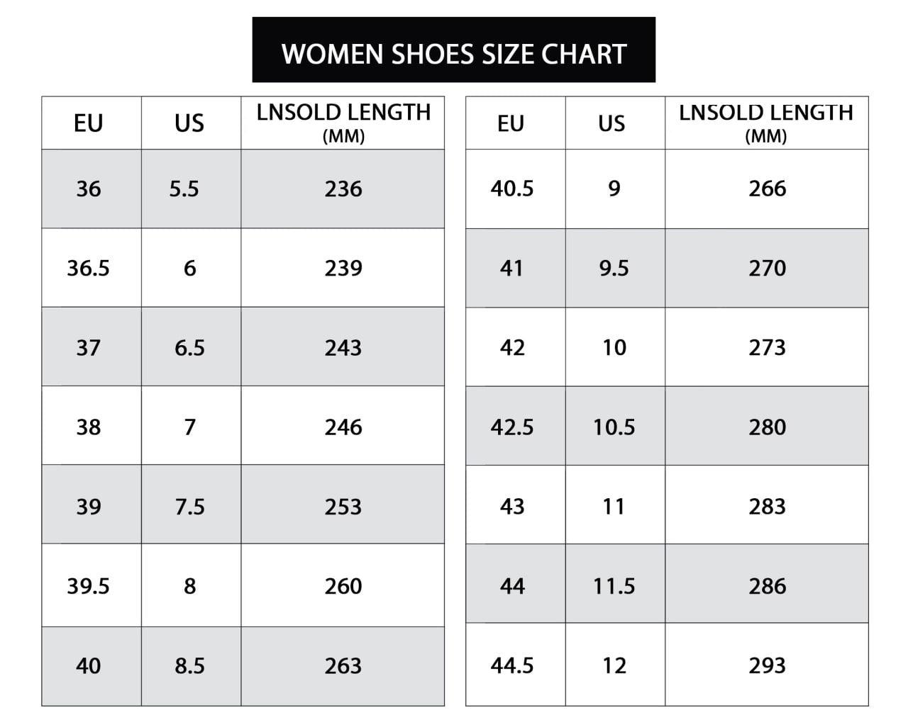 * Measurements are listed in us inches.